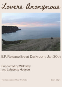 Lean into raw sentimentality with Ōtautahi-dwelling duo Lovers Anonymous as they celebrate the release of their Self-Titled Debut E.P. Born from a shared interest in navigating love and existence in a stripped back indie/folk ballad font, Lovers Anonymous is the symbiotic and freshly conceived collaboration of singer-songwriter Hannah-Grace Horton and guitarist James Wakerley. Accompanied by self-produced queer loverboy Willowby (alternative RB) and introspective word-weaving superman Lafayette Hudson (alternative indie pop), expect an evening of refreshing sensitivity, warmth, and unadulterated yearning.