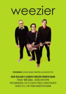 It's weezier time again. This year there will be songs from the Blue, Red, Green, Black, Make Believe, Pinkerton, Every Thing Will Be Alright in the End and Maladroit albums, oh yes, and at last a song from the White albummm! So freshen up on all those songs and head on down to the darkroom, it's going to be pretty neat. Straight into it, no warmup band required.