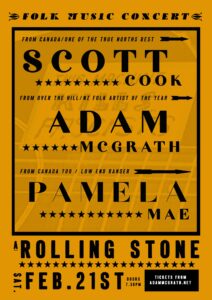 Born in West Virginia and raised on the Canadian prairies, Scott Cook quit a job teaching kindergarten in Taiwan in 2007 to embark on the life of a full-time troubadour. He’s toured nearly nonstop across Canada, the US, Europe, Asia, Australia, New Zealand and elsewhere ever since, living out of backpacks and campervans, averaging over a hundred shows and a dozen summer festivals a year, and distilling his experiences into empathetic, keenly observant verse. Since 2022 he’s been joined full-time…