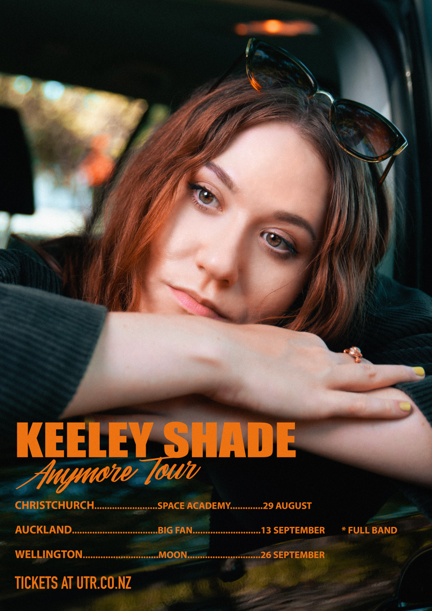Don’t miss Keeley Shade’s debut headline tour across Aotearoa this August and September, in support of her EP Anymore. Keeley invites you into a world where vulnerability meets power, bringing her magnetic alt-pop catalogue to the stage with live shows in Auckland, Christchurch and Wellington. Known for crafting every part of her music, from writing and producing to mixing and performing, she is a rising force with a boundless approach to sonic textures.