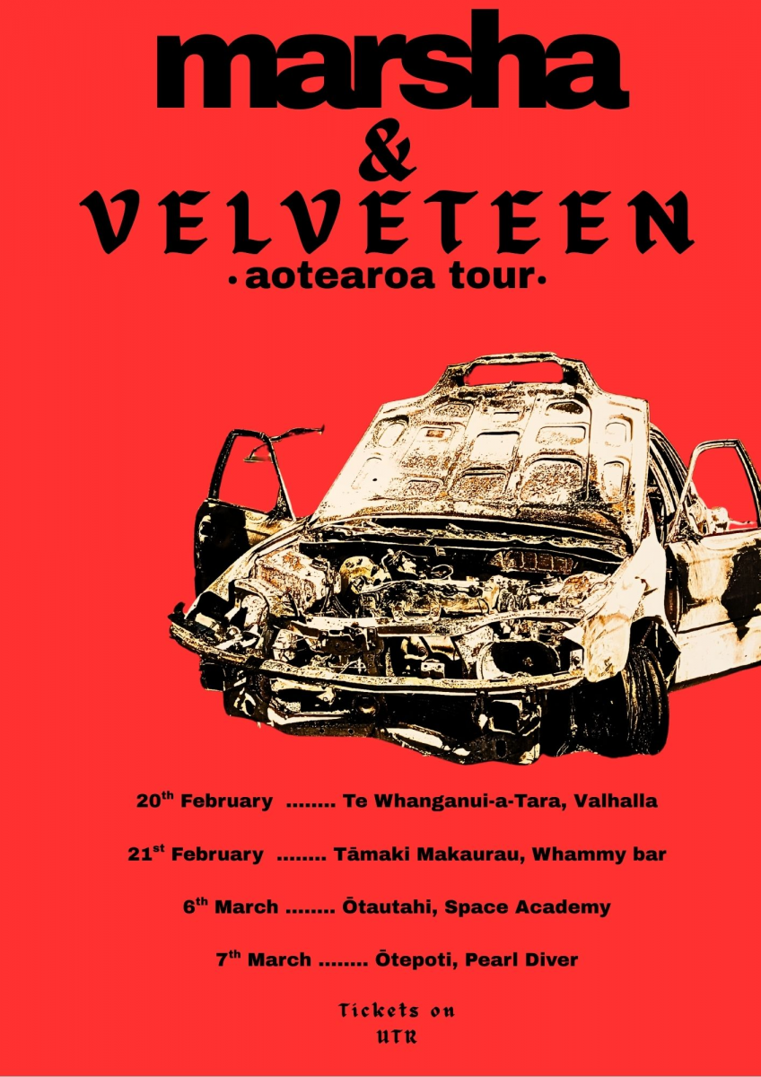 Ōtautahi post punks Marsha and alt-rock outfit Velveteen are taking their loud and energetic live shows across the country. At the end of the 2025/26 summer, the two bands are taking on four shows in Wellington, Auckland, Christchurch, and Dunedin. Joining the tour are some of Aotearoa’s finest bands around including Cruelly, Back to the Hillside, Pearly*, and Gracie Snow.