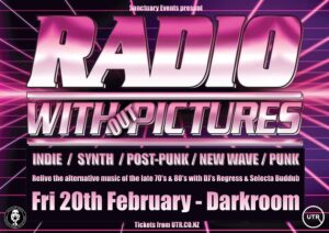 Sanctuary Events present Radio Without Pictures - DJ Music Night For a generation of music fans before the internet, Radio with Pictures (1976 - 1989) was a vital link to the music that mattered — and essential viewing before TV2's Sunday night horror flick. Revisit the classic tunes from the late 70's and 80's as DJ's Regress & Selecta Buddub take you on a journey of iconic music featuring punk, new wave, synth pop, indie, post-punk and more. Tickets from…
