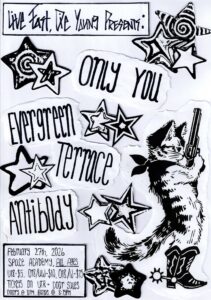 LIVE FAST, DIE YOUNG PRESENTS: All Ages Gig w/ Only You, Evergreen Terrace & ANTIBODY. Performing live at Space Academy on February 27th! Only You are a female-fronted emo band blending 90s emo nostalgia and the intensity of modern hardcore. Inspired by Title Fight, Scowl, Have Heart, and pretty much anything else that is suffixed by "core." Evergreen Terrace are a new 4-piece emo/melodic hardcore adjacent band from Springfield, or close enough! (Ōtautahi, Aotearoa). Taking inspiration from bands like Modern…