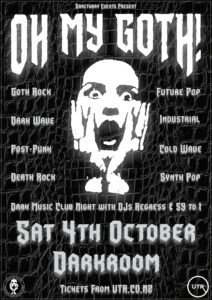 Sanctuary Events present OH MY GOTH! Dark Music Club Night DJs Regress & 59 to 1 will take you on a journey celebrating the Dark 80s featuring Goth Rock, Post-Punk, Dark Wave, Industrial, Death Rock, Future Pop, Cold Wave, Synth Pop +more Expect to hear music from a selection of these artists and more; ALIEN SEX FIEND, AND ONE, BAUHAUS, CABARET VOLTAIRE, CHRISTIAN DEATH, CLAN OF XYMOX, COCTEAU TWINS, COVENANT, DEAD CAN DANCE, DEATH CULT, DEPECHE MODE, ECHO AND THE…