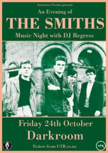 Sanctuary Events present An evening of THE SMITHS Music Night with DJ Regress Come dance and sing the night away to all your favourite Smiths songs! We will attempt to play every Smiths song in a 4 hour showcase! Tickets available from UTR.co.nz R18 R.O.A.R