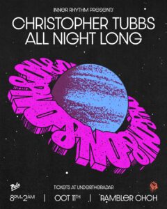 Inner Rhythm and ON&ON present Christopher Tubbs, All Night Long, at Rambler in Christchurch. Christopher Tubbs (Public Possession) loves a 6 hour set to a full house of music evangelists. His previous Christchurch appearances have gone down in clubbing folklore. The steady climb, the ability to swerve off on tangents but still be building, building, building. The ability to play with volume, tempo, dynamics. To tell a story. Christopher Tubbs is a master of this. If you're new to Mr…
