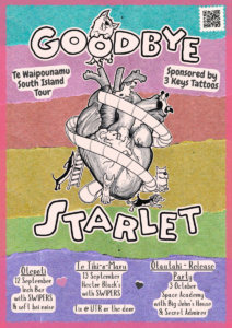 **All presale tickets go in the draw to WIN a $100 voucher to 3 Keys Tattoos!** Ōtautahi four-piece Goodbye Starlet are touring Te Waipounamu as they get set to release their latest batch of songs. Join the bubble grunge, emo, folk, punk, power pop quartet for a fun night of tunes and chats. Here's what to expect: - Environmentally friendly, hand made, one of a kind merch - Honest to goodness party bags (it's a celebration after all) - Colouring-in…